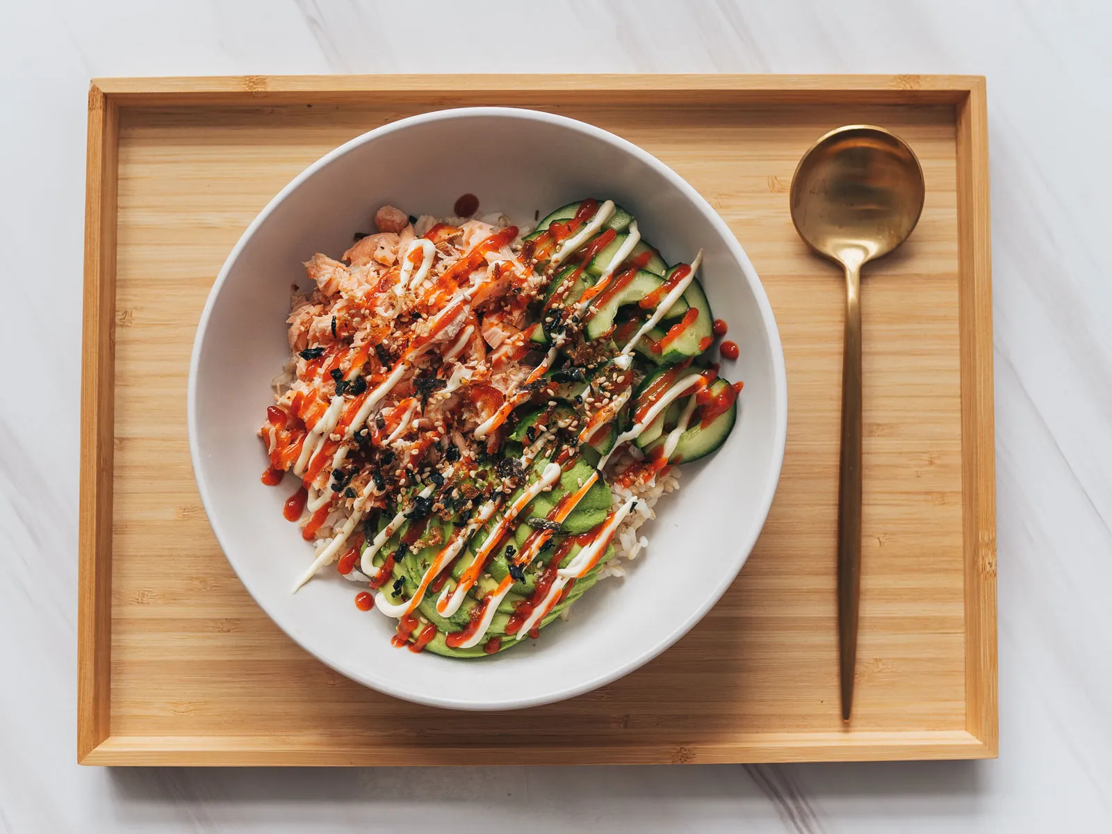 As mentioned the TikTok Salmon Rice Bowl is topped with sriracha. Cailee Fischercaileeeats Steph Pappasstephpappas.